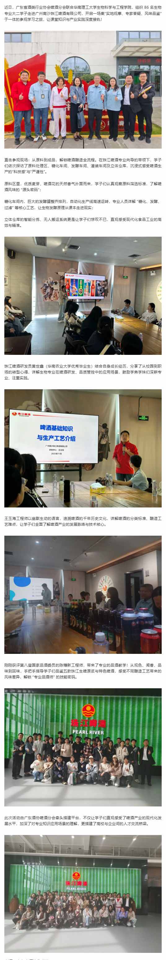 校企联动!86 名学子探秘珠江啤酒,解锁酿造科技与风味
