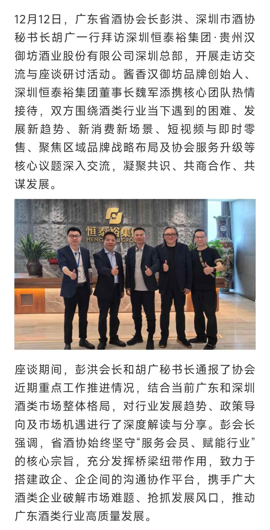 会长彭洪到访深圳酒协:共商行业服务创新 助推粤酒振兴