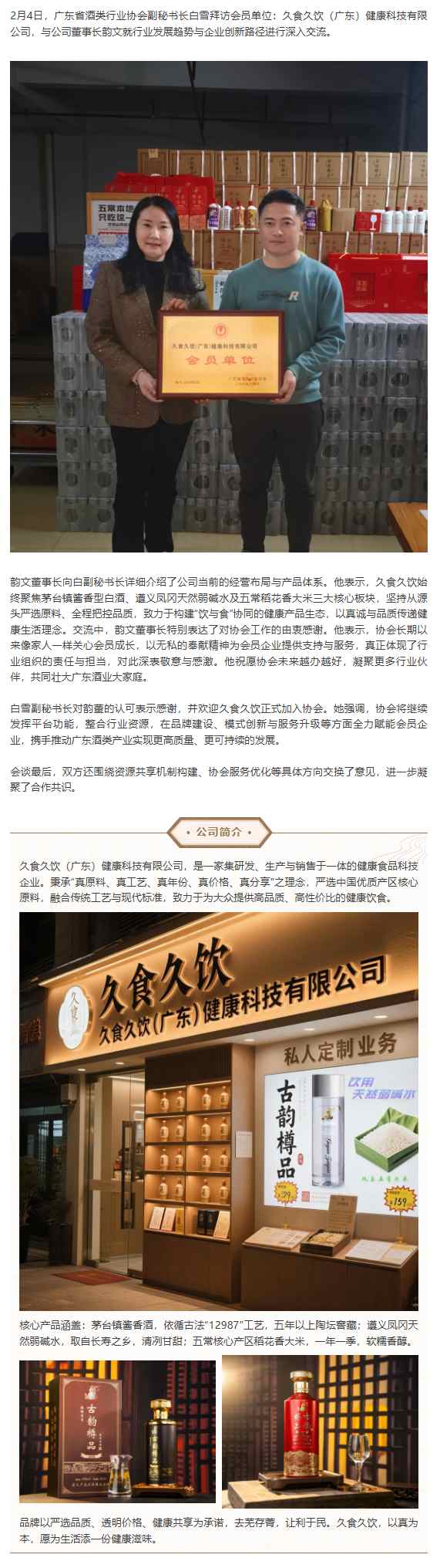 拜访会员:【会员单位】久食久饮(广东)健康科技有限公司