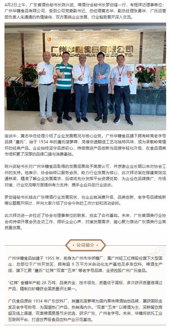 拜访会员:【副会长单位】雪花啤酒(广州)有限公司