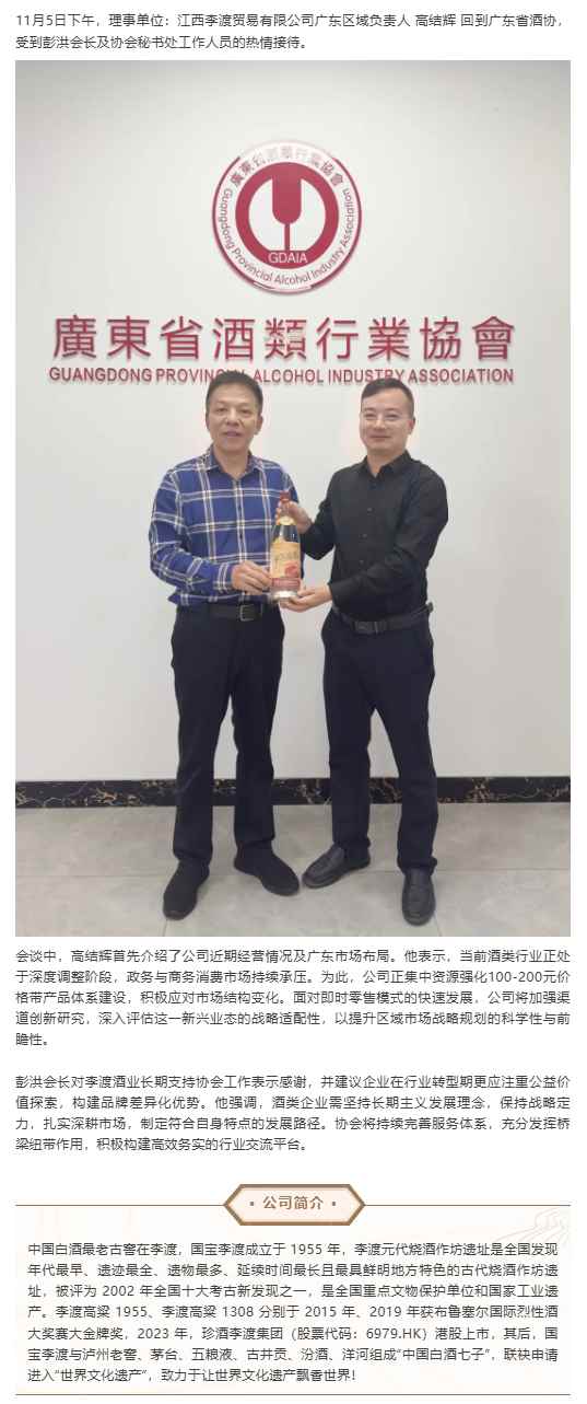 会员回家:【理事单位】江西李渡贸易有限公司