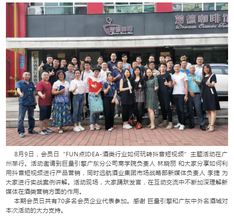 时间:2019年8月16日内容来源: 广东省酒协秘书处 浏览量:4113 分享到: