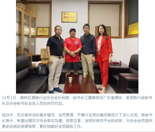 海珠区酒协会长钟扬、秘书长江建雄到访广东省酒协