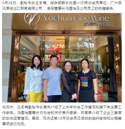 • 拜访会员:【会员单位】番禺百逸美酒业