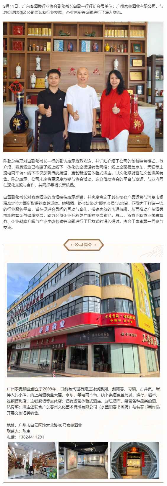 拜访会员:【会员单位】广州泰奥酒业有限公司