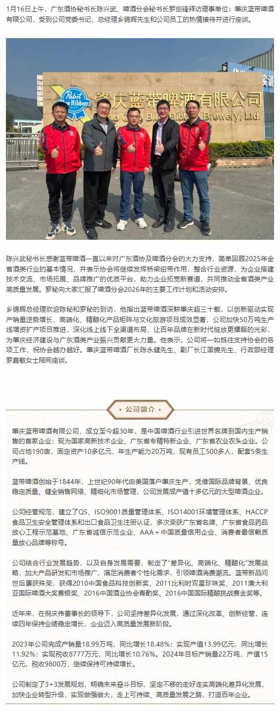 拜访会员:【理事单位】肇庆蓝带啤酒有限公司