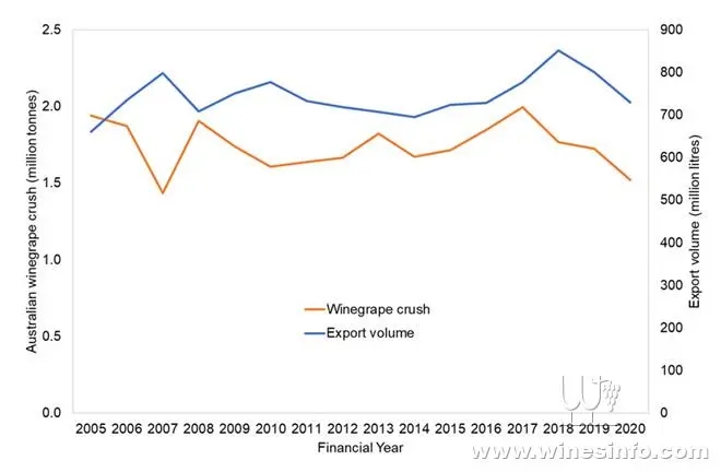 Clark先生说,2020年是近十年来澳大利亚酿酒葡萄收获量最小的一个年份,出口量的下降主要是由于供应短缺,而不是需求疲软。