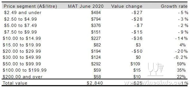 总体而言,价格高于10澳元/升(离岸价)的葡萄酒出口额增长了5%至10.4亿澳元。