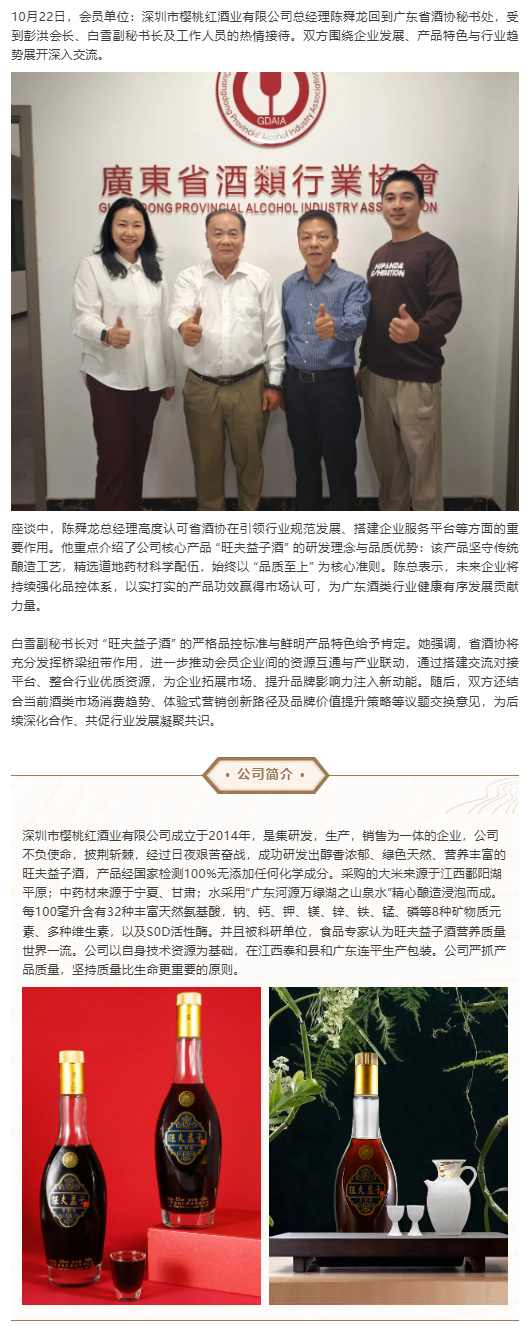 贵州省习水县委书记冉崇庆到访广东省酒类行业协会开展招商考察